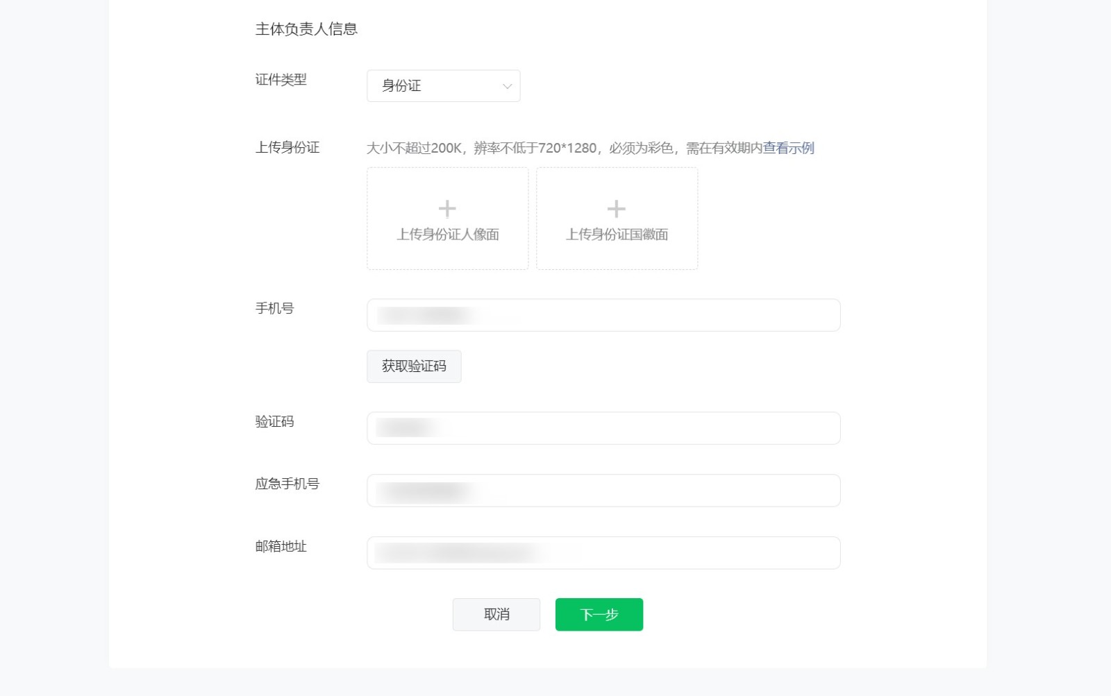 提示:手機號碼請填寫(xiě)主體負責人、應急聯(lián)系人本人使用的有效手機號碼,需保持電話(huà)暢通,不同人不能使用同一個(gè)號碼。
