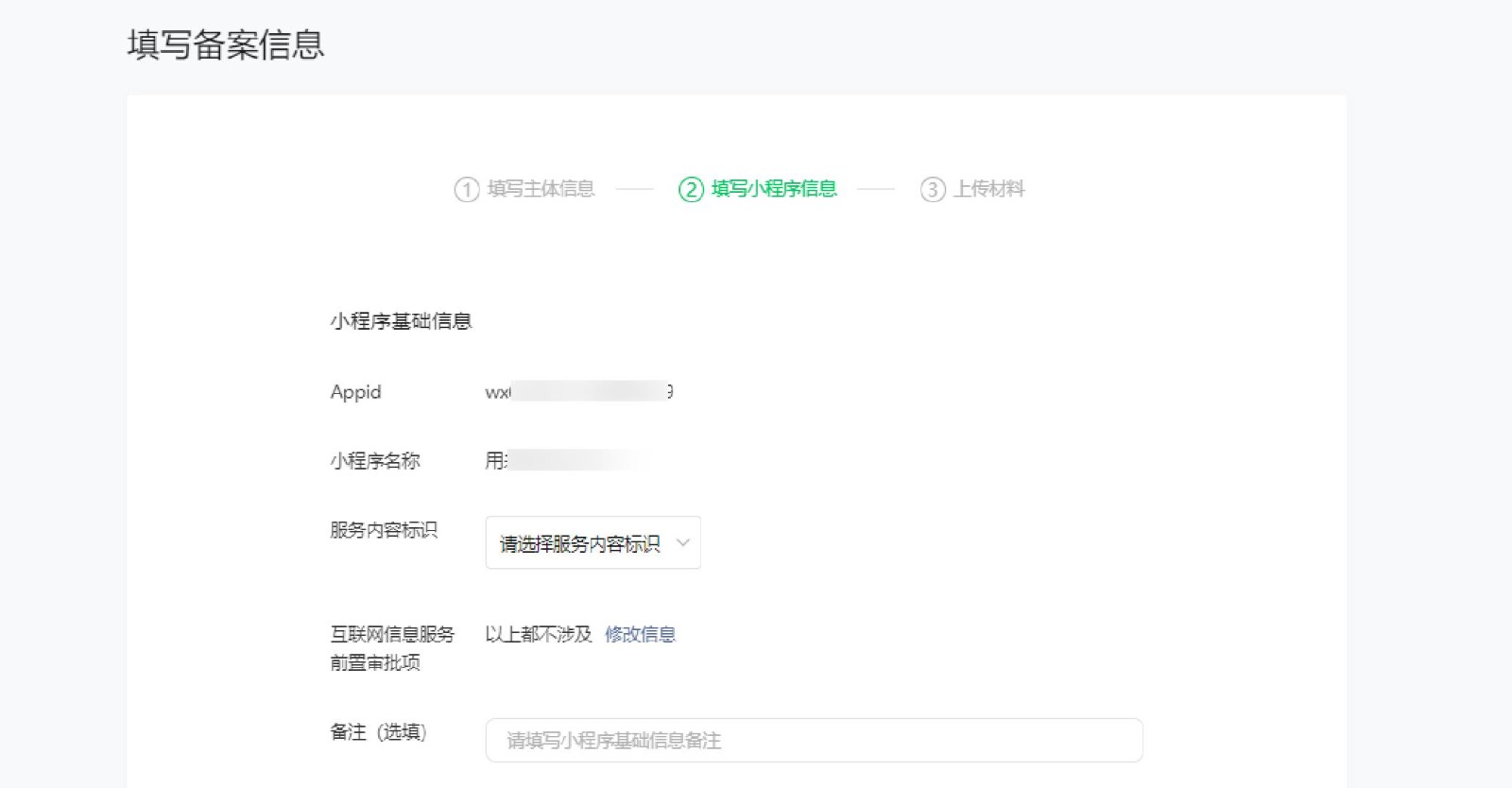 變更備案:更新已經(jīng)完成備案的主體、小程序信息
