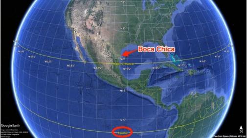 最后,博卡奇卡是美國最南部的城市之一。盡可能接近赤道有助于火箭節省燃料,因為地球的自轉可大幅增加發(fā)射速度。