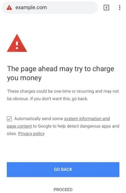 與 Chrome 71 屏蔽惡意廣告的措施類(lèi)似,此舉旨在對惡意扣費者施加嚴重的懲罰。Google 將向試圖訪(fǎng)問(wèn)此類(lèi)網(wǎng)站的用戶(hù),顯示一個(gè)巨大的警告頁(yè)面。