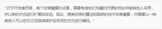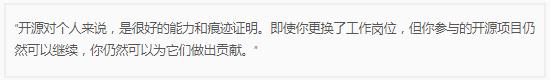 Doug Cutting 認為所有軟件者都應該將開(kāi)源納入自己的職業(yè)規劃, 因為會(huì )有更多雙眼睛看到你的代碼。你會(huì )擁有一個(gè)更大的社區,他們知道你正在做什么,他們會(huì )給你提交建議和反饋,他們可以直接參與你的項目,這對你的職業(yè)生涯有益。