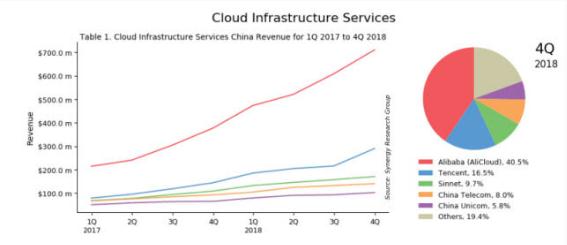 2017 Q1~2018Q4 中國云基礎設施服務(wù)市場(chǎng)份額
