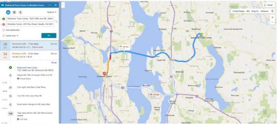 必應地圖添加了一項新功能,可根據路況分配路線(xiàn)的特定顏色。例如,指定為橙色的路線(xiàn)意味著(zhù)該區域的中等交通量。紅色路線(xiàn)表示交通繁忙,而藍色指定為沒(méi)有交通擁堵的道路。