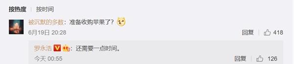 有網(wǎng)友在微博下留言:“準備收購蘋(píng)果了”?羅永浩回復:還需要一點(diǎn)時(shí)間。