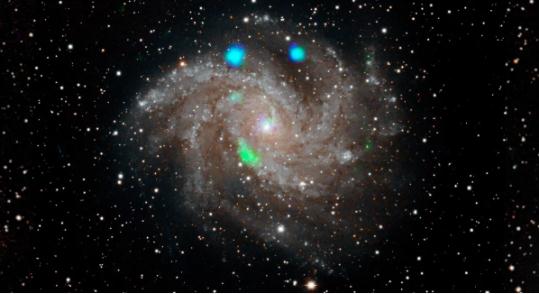 據外媒 Cnet 報道,近日天文學(xué)家借助美國宇航局(NASA)的 NuSTAR X 射線(xiàn)天文臺發(fā)現了一些奇怪的東西。在對“煙花”星系進(jìn)行成像時(shí),NuSTAR 發(fā)現了幾個(gè)神秘明亮的X射線(xiàn)光源,呈綠色和藍色斑點(diǎn)。然而數天之后,這些斑點(diǎn)就消失了。
