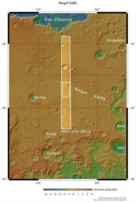 Nirgal Vallis 的地形圖 Credit: ESA/DLR/FU Berlin