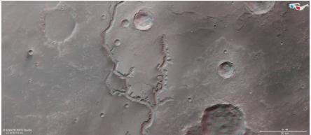 Nirgal Vallis 3D 版,需要佩戴 3D 眼鏡觀(guān)看。Credit: ESA/DLR/FU Berlin