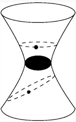 在廣義相對論中,蟲(chóng)洞與黑洞有關(guān)。在黑洞中,物質(zhì)坍縮成了一個(gè)點(diǎn),或稱(chēng)為奇點(diǎn)。物質(zhì)一旦進(jìn)入黑洞,就永遠被困住了。蟲(chóng)洞在外部有著(zhù)同樣的結構,但它的中心并非是一個(gè)奇點(diǎn),而是形成了一種通向另一個(gè)空間區域或另一個(gè)宇宙的隧道。當物質(zhì)進(jìn)入蟲(chóng)洞時(shí),便會(huì )穿過(guò)隧道前往另一邊。蟲(chóng)洞的概念最初是由愛(ài)因斯坦和羅森提出的,因此有時(shí)它們也被稱(chēng)為愛(ài)因斯坦-羅森橋。