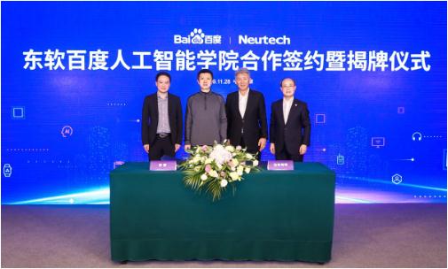 11 月 28 日消息,百度與東軟教育科技集團在京簽署戰略合作協(xié)議,并為合作設立的“東軟百度人工智能學(xué)院”舉行成立及授牌儀式。