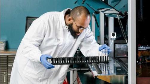 研究和開(kāi)發(fā)人員 Abdi Khalif 在 Color Genomics 的基因組測試實(shí)驗室中工作
