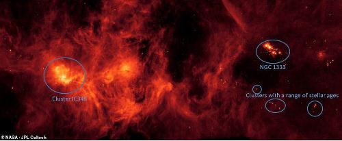 在這片龐大星云的右邊坐落著(zhù)一個(gè)明亮的年輕恒星群,被稱(chēng)為 NGC1333,距離地球 1000 光年。自 20 世紀 80 年代中期以來(lái),天文學(xué)家就觀(guān)察到了這團恒星,但在其下方的星團至今仍是個(gè)謎。