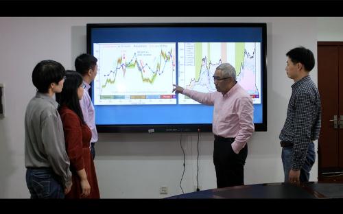 南京大學(xué)樊雋軒教授(左三)、沈樹(shù)忠院士(右二)等分析大數據計算的結果
