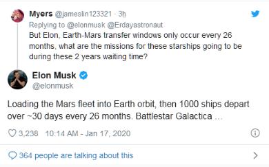 一位 Twitter 用戶(hù)在看了這些數據詢(xún)問(wèn)馬斯克真的能在 2050 年之前將 100 萬(wàn)人送上火星,對此馬斯克的回答是--“是的”。