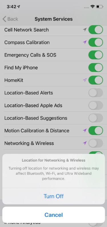 在 iPhone 11 和 11 Pro 推出后不久,用戶(hù)就發(fā)現這些手機會(huì )定期跟蹤他們的位置,即使在他們關(guān)閉了手機上所有應用程序的定位服務(wù)之后也是如此。而最新的 iOS 13.3.1 測試版在系統設置中新增了一個(gè)關(guān)閉超寬頻(Ultra Wideband)功能的開(kāi)關(guān)。