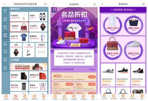 小米有品“名品折扣”頻道入口及頻道詳情頁(yè)面(圖片來(lái)源:36 氪自小米有品 App 截取)