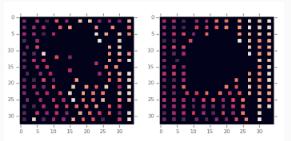 然后,前饋神經(jīng)網(wǎng)絡(luò )將其作為一個(gè)聚合輸入,輸出一個(gè)學(xué)習到的表示方法,該方法可以捕捉有用的特征,并幫助在所有可能的網(wǎng)格單元中生成一個(gè)概率分布,通過(guò)策略網(wǎng)絡(luò )可以將當前節點(diǎn)放置在該節點(diǎn)上。整個(gè)過(guò)程可以用下面的 GIF 來(lái)封裝。左邊的芯片顯示了從頭進(jìn)行的宏放置,右邊的芯片則是對一些初始放置進(jìn)行微調。