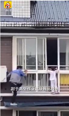 危急之下,正在服務(wù)途中的胡云川看到這一幕,飛奔過(guò)去,從 5 樓住戶(hù)家的陽(yáng)臺徒手攀爬至 6 樓,僅僅用時(shí)十幾秒,將女童成功解救。救人后,胡云川沒(méi)有多說(shuō)就轉身離開(kāi)。