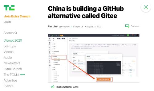 近日,美國知名科技媒體 TechCrunch 發(fā)表了一篇題為“中國正在建立一個(gè)名為 Gitee 的 GitHub 替代方案(China is building a GitHub alternative called Gitee)”的報道,闡述了中美技術(shù)脫鉤的影響進(jìn)一步延伸到代碼托管領(lǐng)域。
