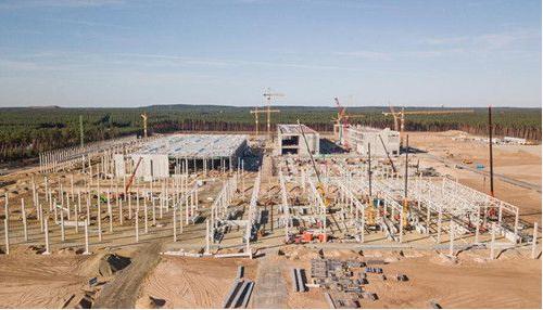 從外媒的報道來(lái)看,特斯拉柏林超級工廠(chǎng)的建設規模有擴大,有 3 棟廠(chǎng)房的主體結構已經(jīng)基本成型。