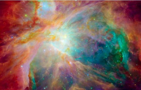 哈勃和斯皮策太空望遠鏡中展示的各種顏色,可理解成氫、硫、碳混合而成的氣旋,正在距離我們 1500 光年之外的“恒星工廠(chǎng)”中孕育一批新生的恒星。
