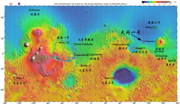 著(zhù)陸地點(diǎn)位于火星北半球的烏托邦平原,著(zhù)陸器上搭載了我國“祝融”號首輛火星車(chē)。