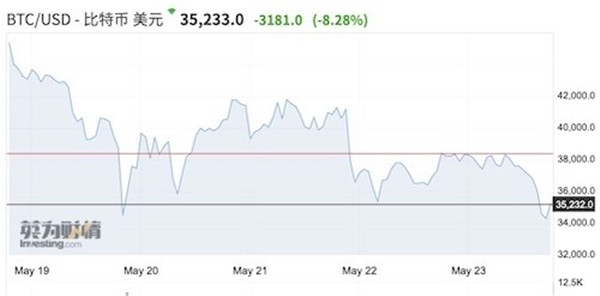 截至北京時(shí)間5月23日18:30,一枚比特幣的價(jià)格報35241美元,相較之下,今年4月,比特幣曾觸及64374美元的歷史新高。