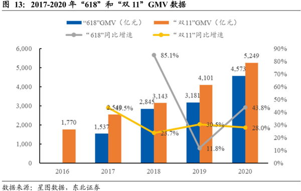 其預測2021年直播電商交易總額有望提升至2萬(wàn)億元,占電商整體銷(xiāo)售額的比例或達15%以上,由于直播帶貨的普及,基于直播的客單價(jià)降低滿(mǎn)減門(mén)檻更有助于促進(jìn)直接在直播間實(shí)現下單。目前,淘寶、快手、抖音呈“三分天下”的格局。而今年,京東或入駐抖音小店,國泰君安觀(guān)點(diǎn)認為,2021年的618購物節有望成為綜合電商和內容電商增強合作的轉折點(diǎn)。