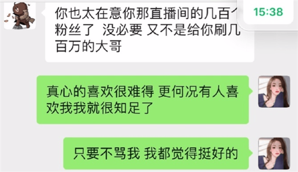 在王思聰一直勸說(shuō)其不要醉心直播,“我養你”時(shí),回答“有人喜歡就很知足”,側面樹(shù)立了熱愛(ài)工作的獨立形象。