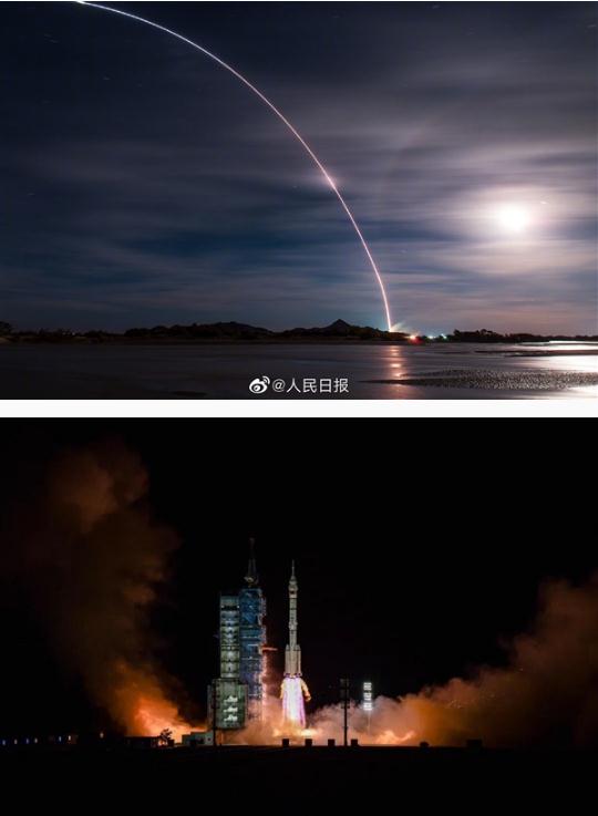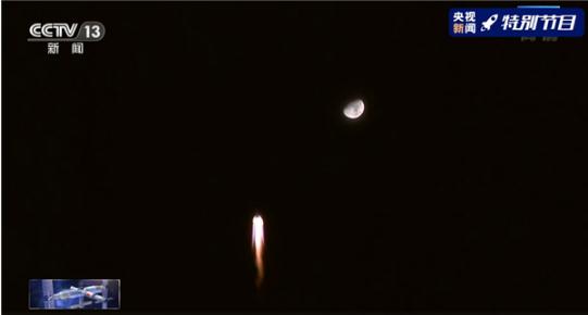 發(fā)射過(guò)程中還出現了浪漫的一刻,升空中的長(cháng)征二號火箭、神舟十三號飛船,和一輪明月同框。