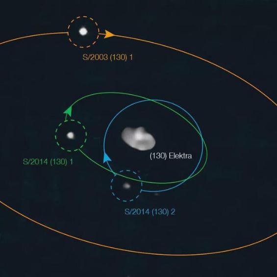 慫女星(Elektra)是人類(lèi)發(fā)現的第 130 克小行星,除了此前已經(jīng)探明的 2 顆衛星之外,現在天文學(xué)家又發(fā)現了第 3 顆衛星。泰國國家天文研究所的 Anthony Berdeu 開(kāi)發(fā)了一種新的數據處理算法,并用它來(lái)重新審視 2014 年以來(lái)對慫女星的觀(guān)測。