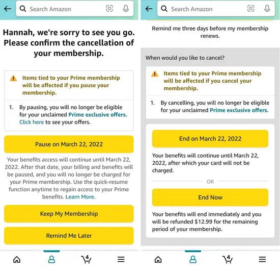 最近數年,多家公司向美國聯(lián)邦貿易委員會(huì )投訴,要求對亞馬遜 Prime 會(huì )員取消過(guò)程以及使用所謂的“dark patterns”(暗黑設計模式)進(jìn)行調查。