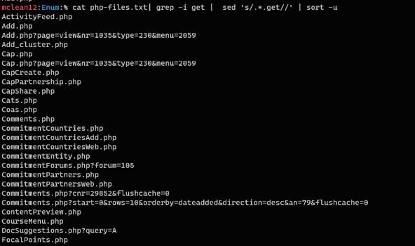 cat php-files.txt| grep -i get | sed 's/.*.get//' | sort -u