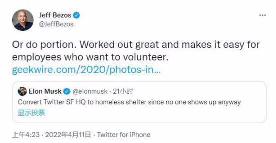 美國當地時(shí)間周日,特斯拉與 SpaceX 首席執行官埃隆?馬斯克(Elon Musk)對其 8100 萬(wàn)推特粉絲發(fā)起在線(xiàn)調查,詢(xún)問(wèn)他們是否支持將推特總部改造為流浪漢收容所。對此,亞馬遜創(chuàng )始人杰夫?貝索斯(Jeff Bezos)也罕見(jiàn)地給出了回應,并提供建議。