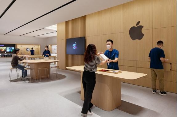 據介紹,Apple 武漢零售店采用花崗巖地面與木飾墻面,讓店內與商場(chǎng)大廳更顯明亮通透。在零售店內,顧客可以探索陳列的 Apple 產(chǎn)品與配件,并向 Specialist 專(zhuān)家尋求技術(shù)支持。Apple 武漢團隊成員將協(xié)助顧客選購商品并對設備進(jìn)行私人設置、選擇分期付款方案、使用符合條件的設備換購新機、預約在線(xiàn)支持等。