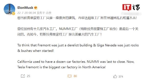 此外,馬斯克稱(chēng)加州曾經(jīng)有十幾家汽車(chē)工廠(chǎng),如今特斯拉弗里蒙特工廠(chǎng)成為北美最大的汽車(chē)工廠(chǎng)。