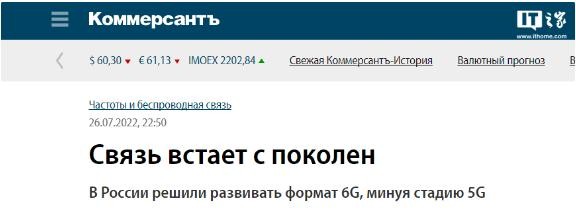 報道稱(chēng),俄羅斯副總理 Dmitry Chernyshenko 在 8 月 1 日前指示數字發(fā)展部、教育與科學(xué)部、財政部一起為 6G 通信領(lǐng)域的研發(fā)提供額外資金,副總理辦公室向《生意人報》證實(shí)該命令已下達。