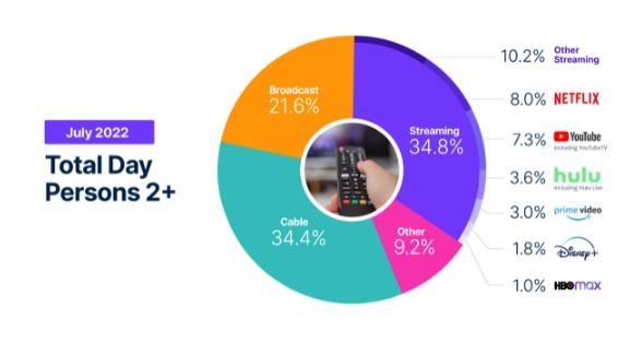最新數據顯示,以奈飛為首的流媒體平臺的收視率在 2022 年 7 月首次超過(guò)了有線(xiàn)電視網(wǎng)絡(luò ),占據當月美國電視收視的最大份額。數據僅包括在電視和聯(lián)網(wǎng)電視上觀(guān)看的節目,移動(dòng)或網(wǎng)絡(luò )流媒體不在考慮范圍之內。這一結果在意料之內,因為近年來(lái)流媒體使用量持續攀升,而傳統有線(xiàn)電視在斷線(xiàn)損失的持續影響中下降。