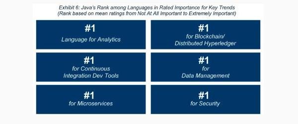 該研究報告考察了當今主流的 20 多種頂級編程語(yǔ)言,發(fā)現 Java 仍然是頂級技術(shù)趨勢中排名第一的語(yǔ)言,也是開(kāi)發(fā)者信任的解決安全問(wèn)題的最高評級語(yǔ)言。