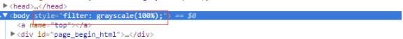 實(shí)現這種效果很簡(jiǎn)單,只需要將css代碼:filter: grayscale(100%);放到body元素里面的style=“”中間就OK了,根本就不需要用到什么網(wǎng)站變灰的插件。如下圖所示: