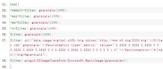 現在做網(wǎng)站一般在全國哀悼日、清明節、地震日時(shí),懂事的網(wǎng)站長(cháng)都會(huì )讓網(wǎng)站整體變成灰色,但是有很多新手網(wǎng)站長(cháng)不知道怎么讓網(wǎng)站頁(yè)面變成灰色的,下面IT備忘錄小編就給大家分享自己搜集的比較全面的網(wǎng)站頁(yè)面變灰色CSS代碼,兼容所有的瀏覽器!