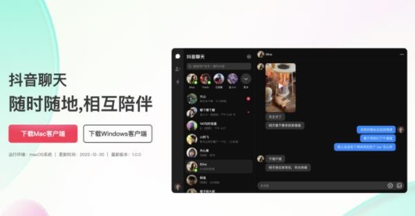 近日抖音在官網(wǎng)上線(xiàn)了一款桌面端聊天軟件,名為“抖音聊天”,提供 Windows 和 Mac 客戶(hù)端。官網(wǎng)顯示該軟件更新時(shí)間為 2022 年 12 月 30 日,最新版本為 1.0.0。