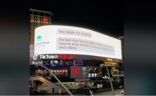 谷歌正在推進(jìn) #GetTheMessage 活動(dòng),希望說(shuō)服蘋(píng)果支持 RCS 消息協(xié)議。正在拉斯維加斯召開(kāi)的 CES 2023 大展期間,谷歌在戶(hù)外數字廣告牌上投放廣告,敦促蘋(píng)果不要在修復其“像素化的照片和視頻”方面“掉鏈子”。