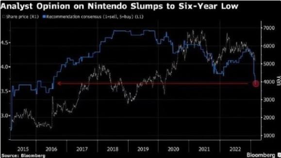 在高盛下調評級后,華爾街分析師對任天堂的平均預期降至 2016 年 7 月以來(lái)的最低水平。受此影響,該股周二一度下跌 1.4%,有可能創(chuàng )下 2021 年 12 月以來(lái)的最低收盤(pán)價(jià)。