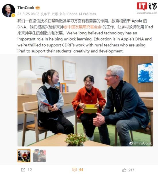 蘋(píng)果對中國發(fā)展研究基金會(huì )的捐助增加至1億元 為教師和學(xué)生創(chuàng )造成長(cháng)機會(huì ) 09:46:12