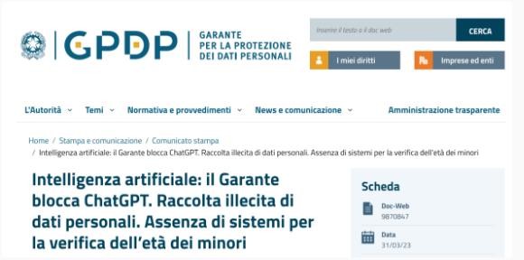 意大利隱私監管機構已對ChatGPT發(fā)布禁令 稱(chēng)其以不當方式收集和存儲信息 09:37:57