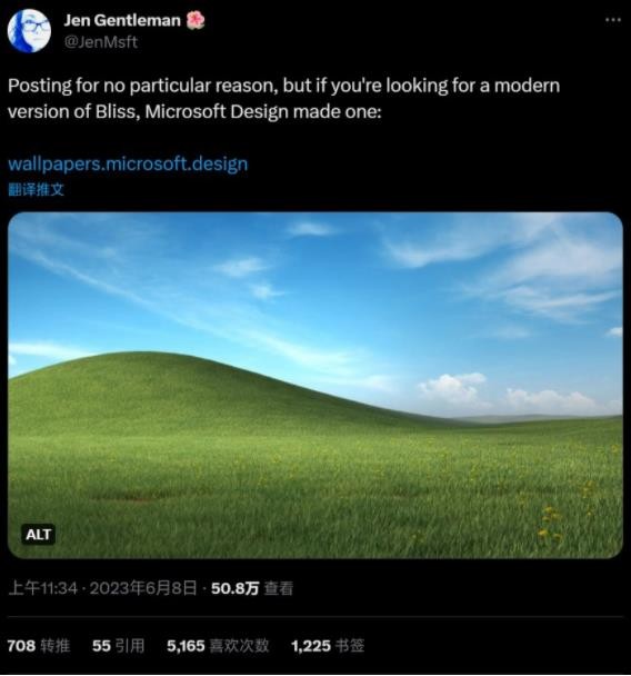 微軟設計團隊 Jen Gentleman 發(fā)布推文展示了新版 Bliss 壁紙,即著(zhù)名的 Windows XP 經(jīng)典“藍天白云綠草” 壁紙的全新演繹版本。
