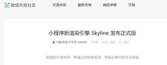 微信開(kāi)放社區官方人員日前宣布,微信小程序新渲染引擎 Skyline 已發(fā)布正式版,進(jìn)一步提升小程序的渲染性能和體驗。