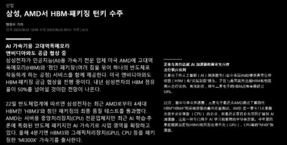據外媒 hankyung 消息,AMD 已與三星電子達成協(xié)議,三星的 HBM3 內存和封裝技術(shù)將被 AMD MI300X GPU 采用,外媒預計明年三星電子將在 HBM 市場(chǎng)獲得 50% 的份額。