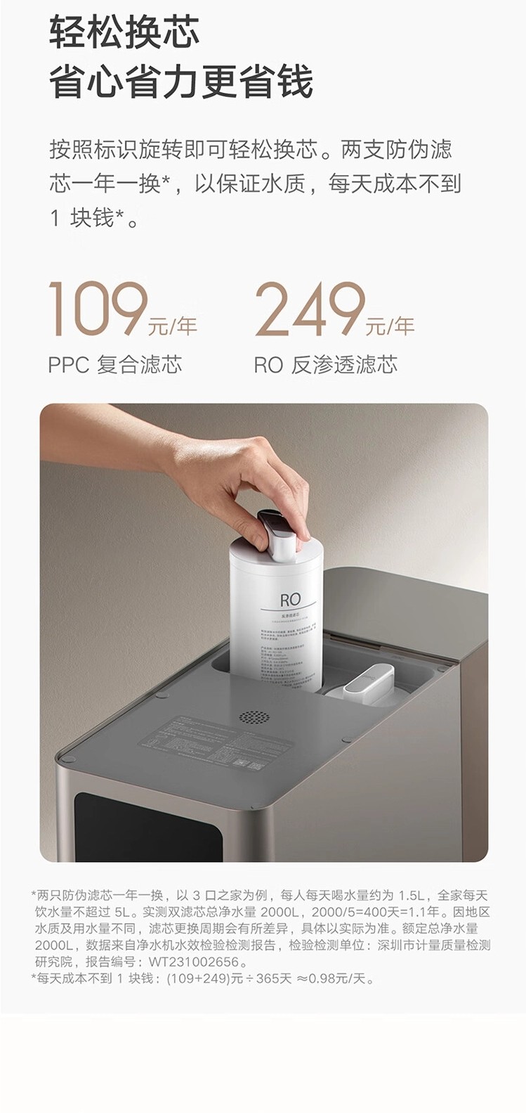 它采用了 100G 大通量 RO 反滲透技術(shù),支持 0.0001μm 高精度過(guò)濾,搭配 PPC 復合濾芯可實(shí)現雙芯 6 級精濾,高效濾除細菌、病毒、重金屬等各類(lèi)有害物,并吸附異色、余氯、異味,改善口感。