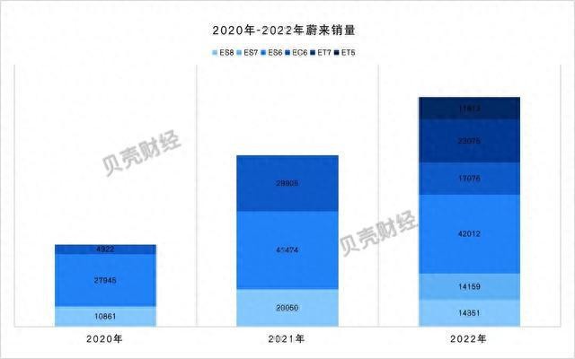 2020 年-2022 年蔚來(lái)銷(xiāo)量。圖片來(lái)源網(wǎng)絡(luò )/侵刪